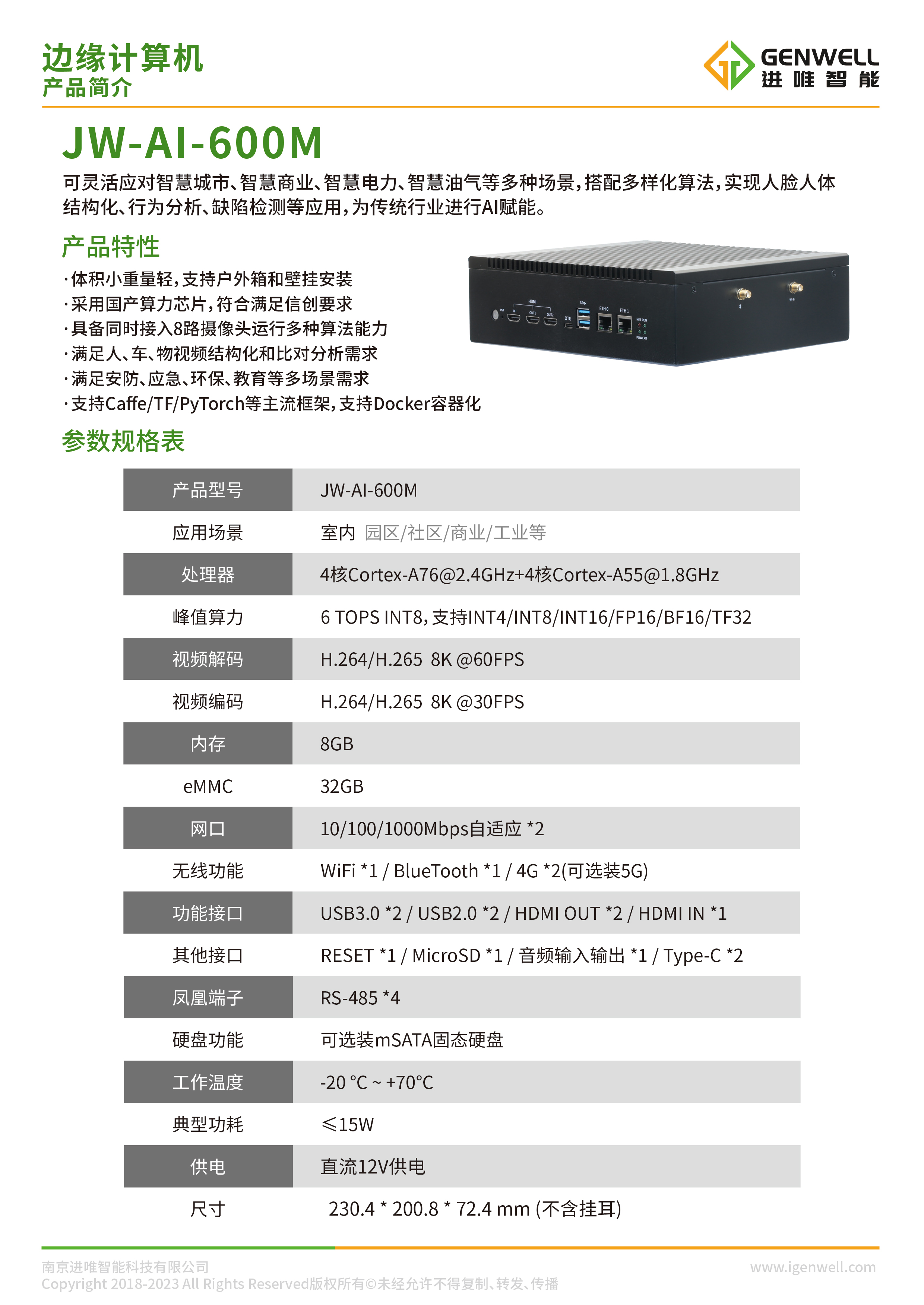 边缘计算机(JW-AI-600M)